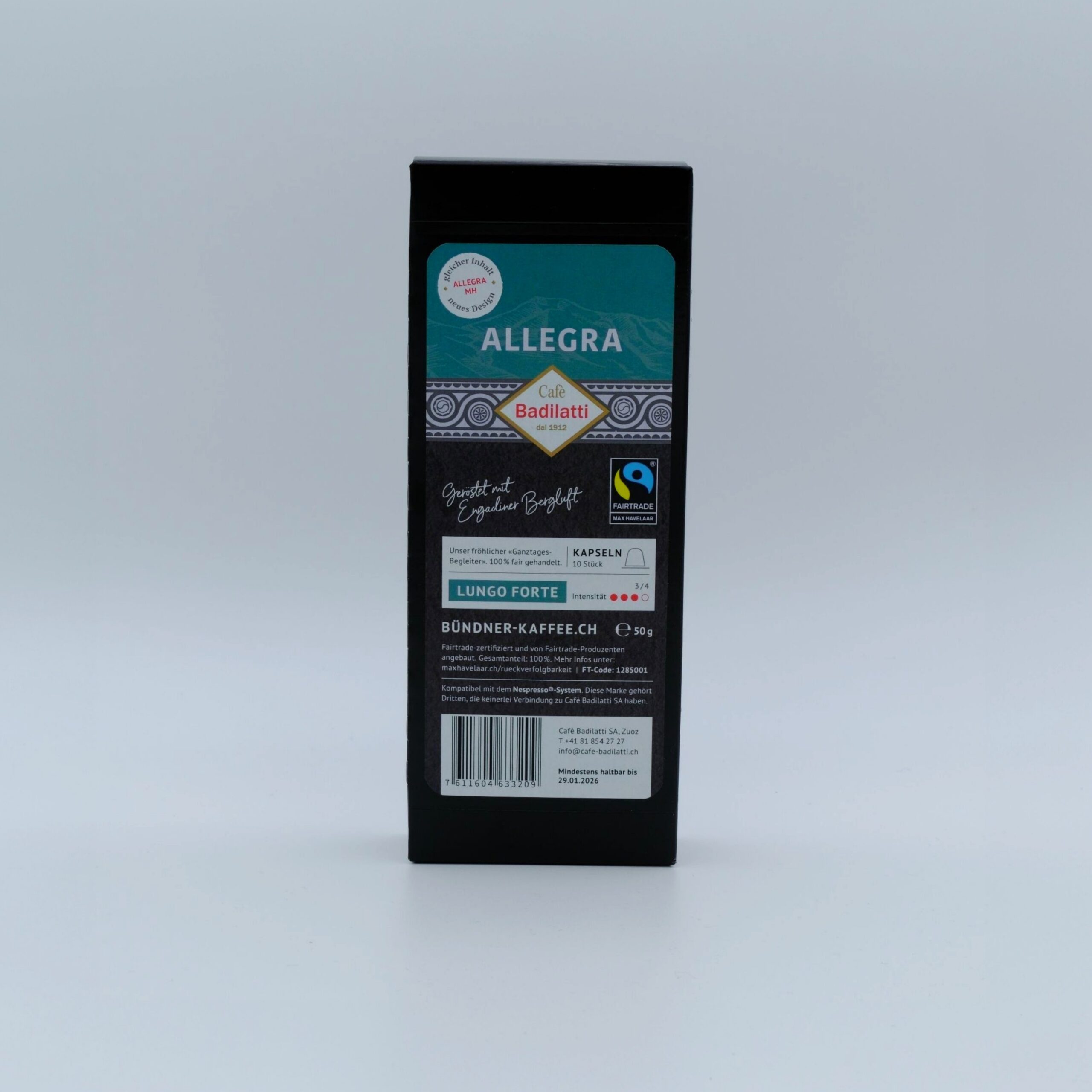 Mit unserem Allegra Max Havelaar erlebst Du einen Caffè Lungo voller Charakter – direkt aus der Kapsel, schnell zubereitet und doch von höchster Qualität.
