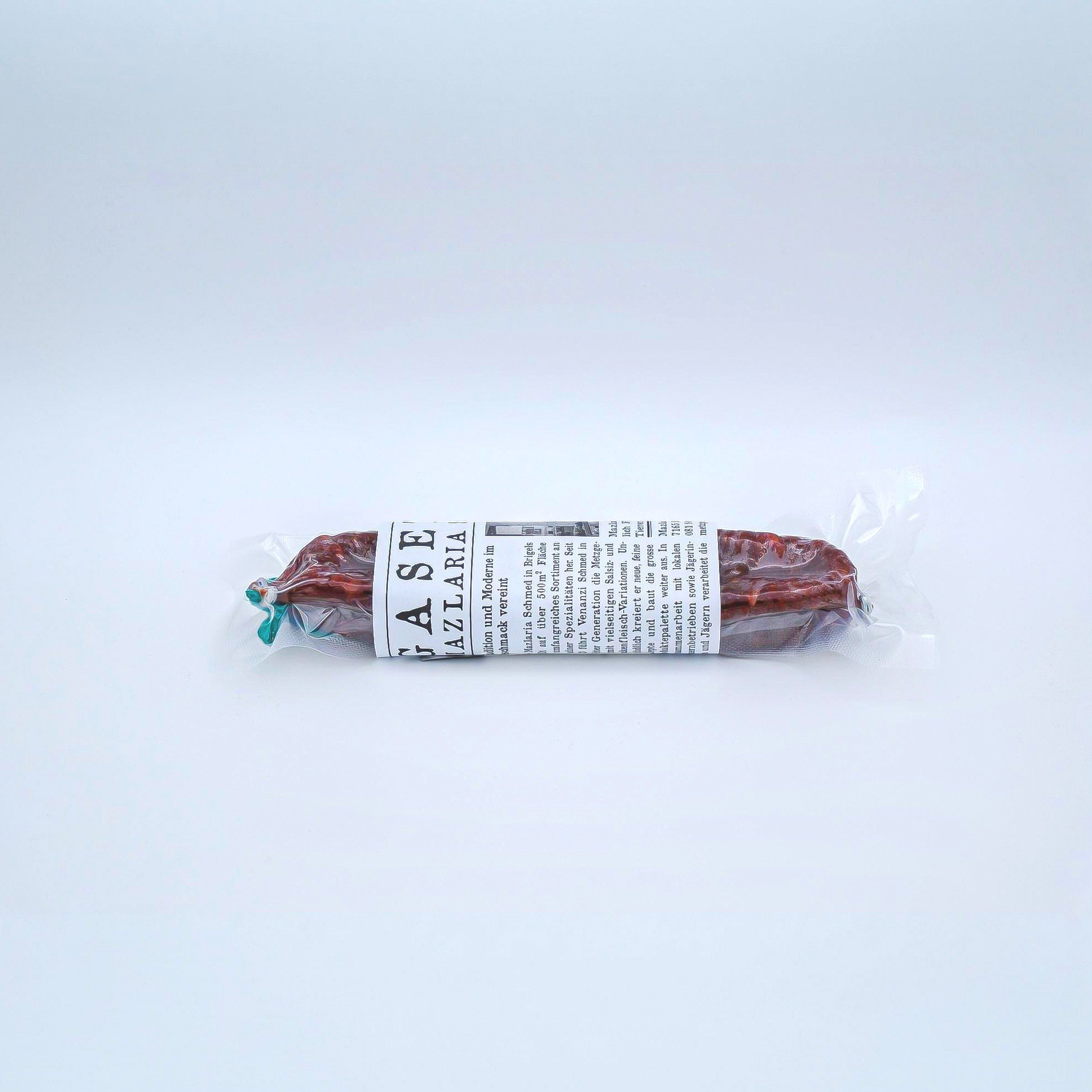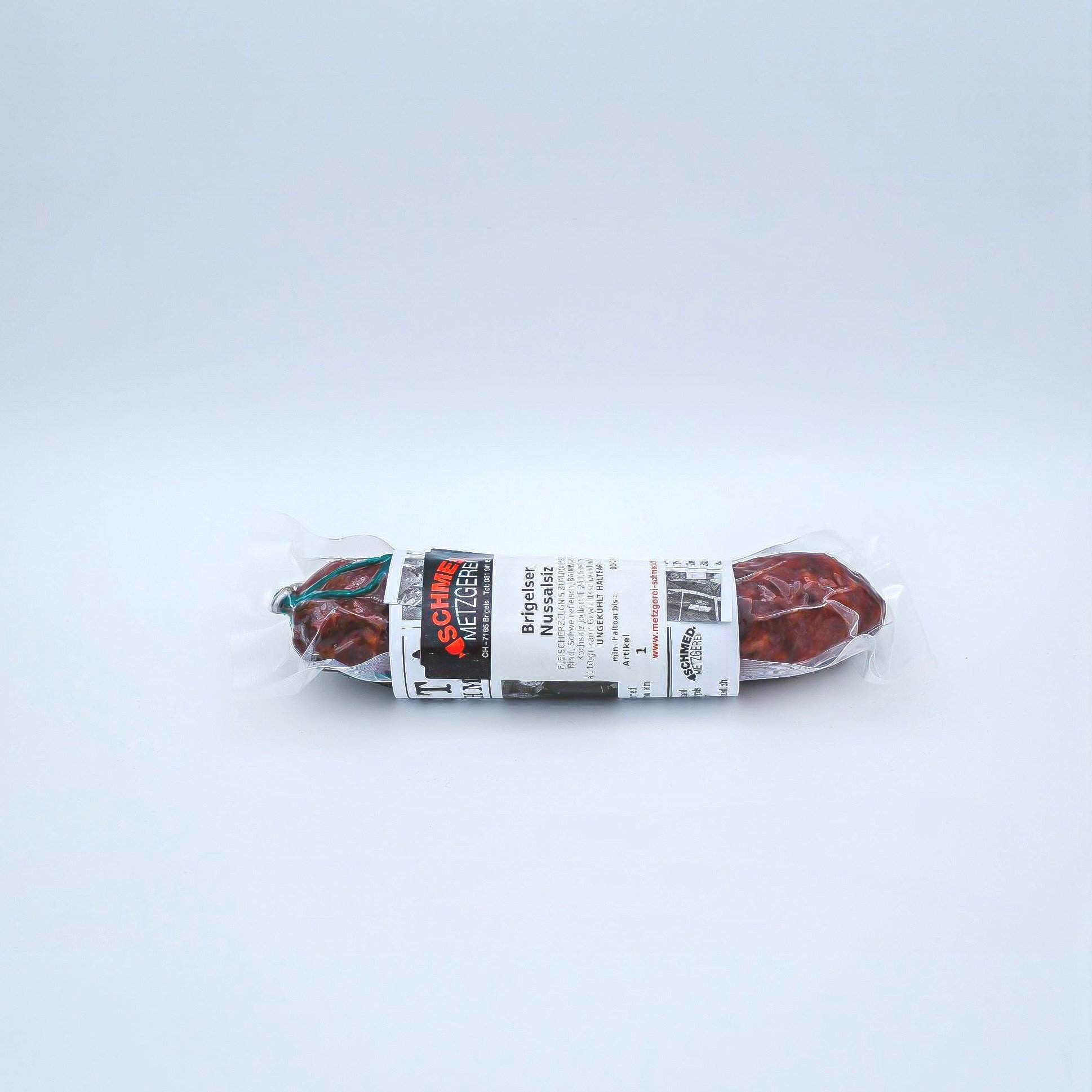 Feinste Baumnüsse gepaart mit dem Klassiker der Bündner Wursttradition. Die sorgfältig abgestimmten Zutaten verleihen dem Brigelser Nussalsiz ein besonders rundes, leicht kräftiges Aroma.