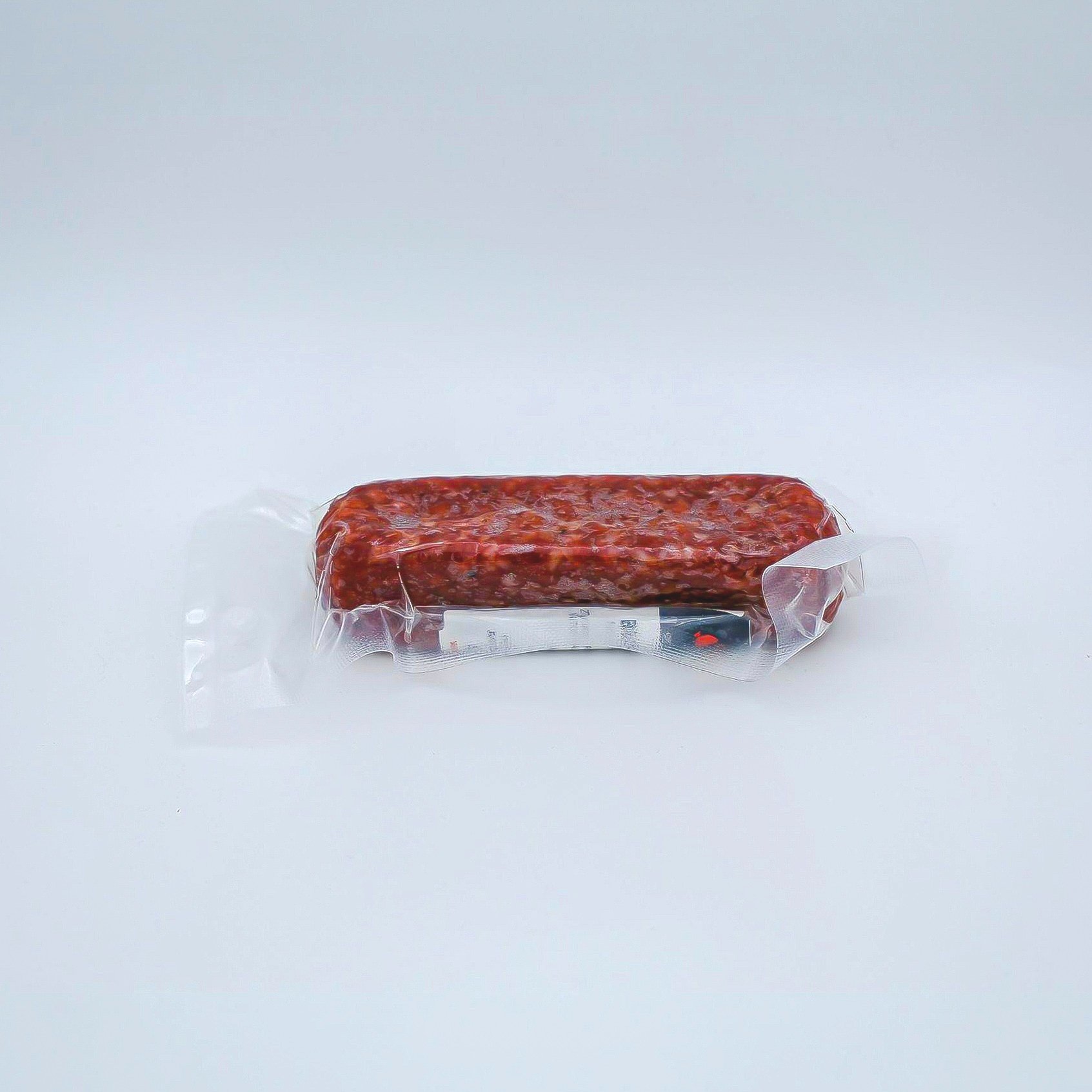 Rind, Schweinefleisch, Speck, Salz, (Kochsalz, Natriumnitrit), Gewürze, Wursthülle aus Kunstdarm