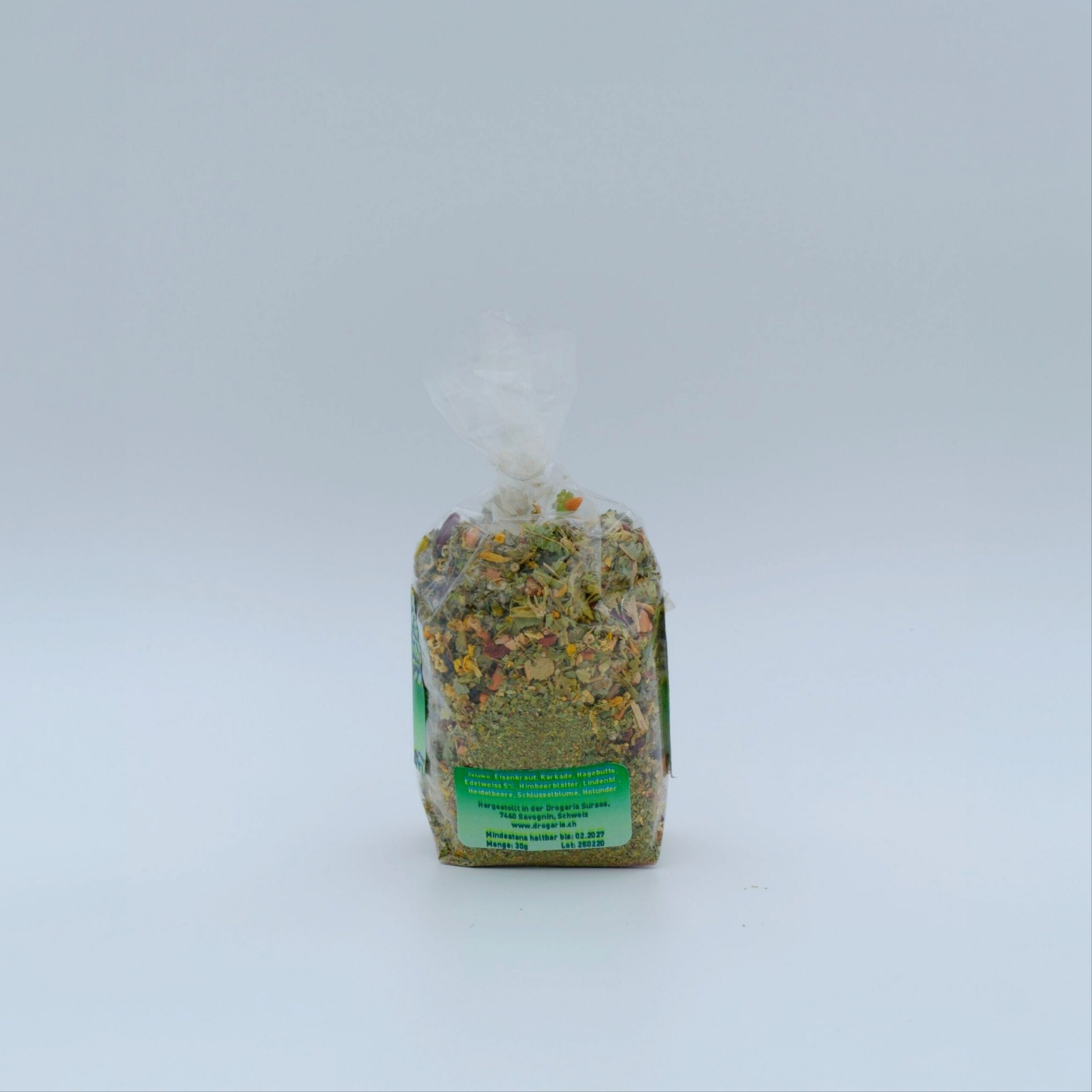 Eisenkraut, Karkade, Hagebutte, Edelweiss 5%, Himbeerblätter, Lindenblume, Heidelbeere, Schlüsselblume, Holunder