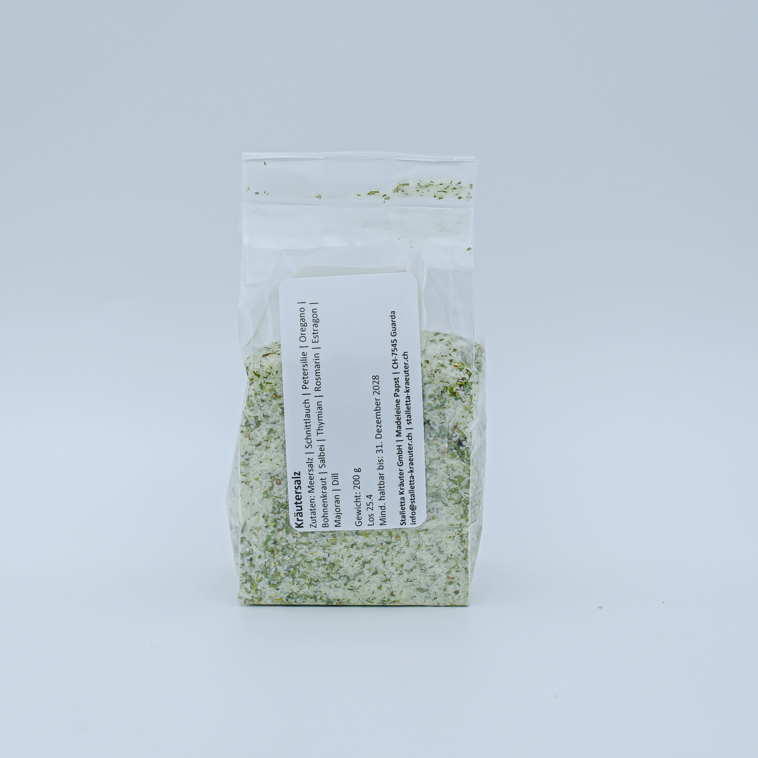 Zutaten | Meersalz, Schnittlauch, Petersilie, Oregano, Bohnenkraut, Salbei, Thymian, Rosmarin, Estragon, Majoran, Dill |