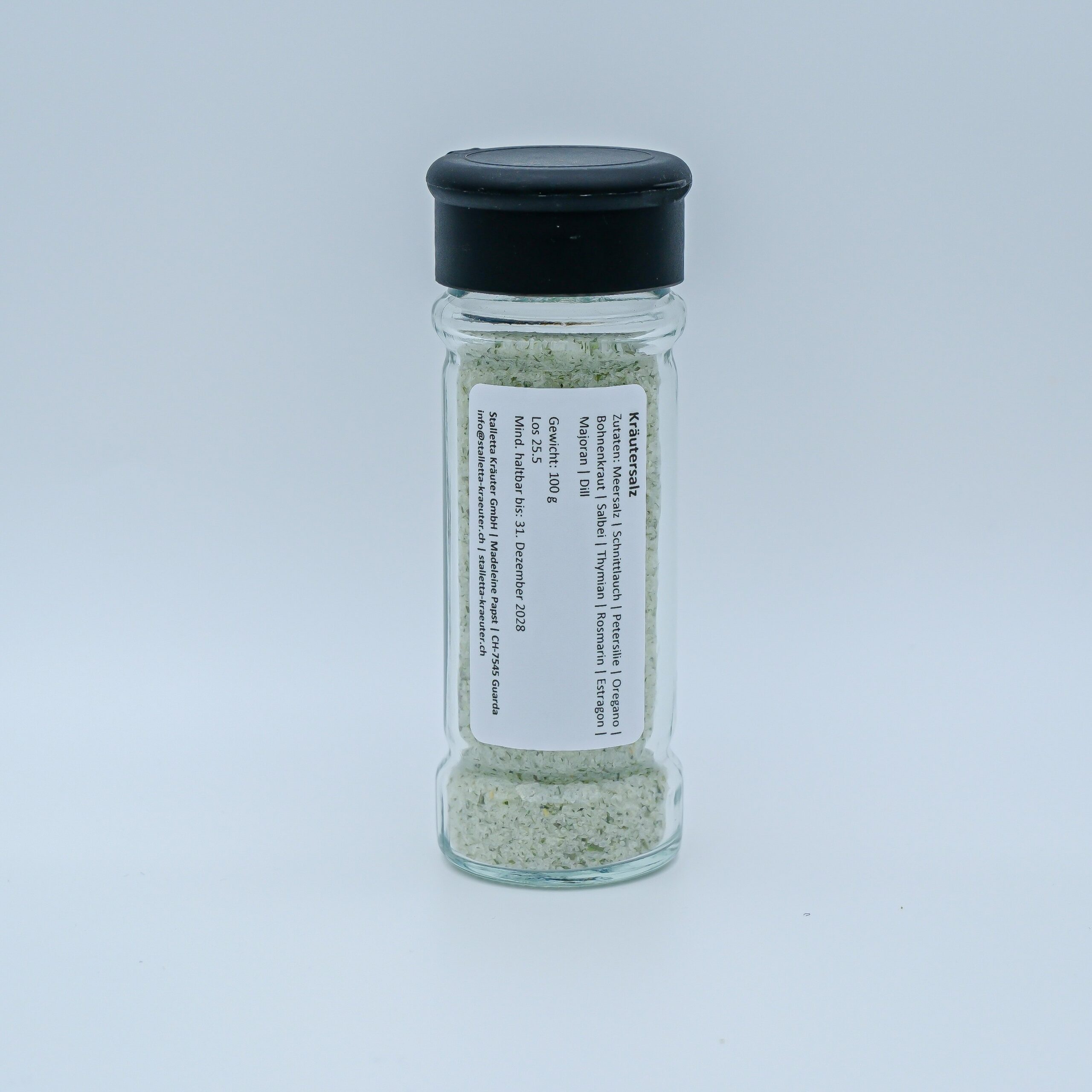 | Zutaten | Meersalz, Schnittlauch, Petersilie, Oregano, Bohnenkraut, Salbei, Thymian, Rosmarin, Estragon, Majoran, Dill |
