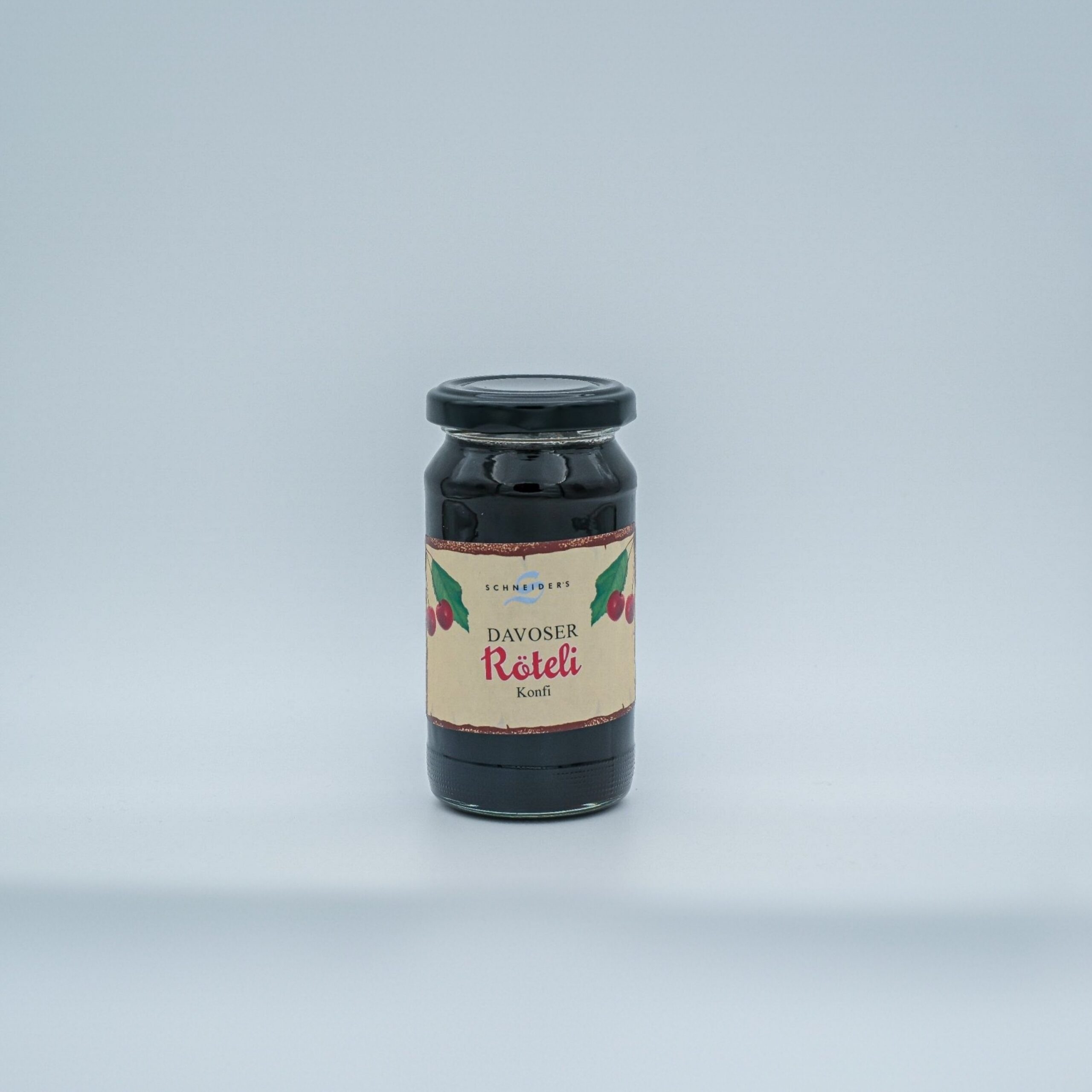 Jetzt kann das Alpenfeeling direkt auf’s Brot geholt werden. Unsere Röteli Konfitüre vereint gedörrte Kirschen, Traubensaft, Rotwein und den typischen Bündner Röteli zu einem fruchtig-würzigen Genuss. Ein Hauch Zimt rundet das Aroma ab – perfekt für Zopf oder als feines Geschenk aus den Bergen.