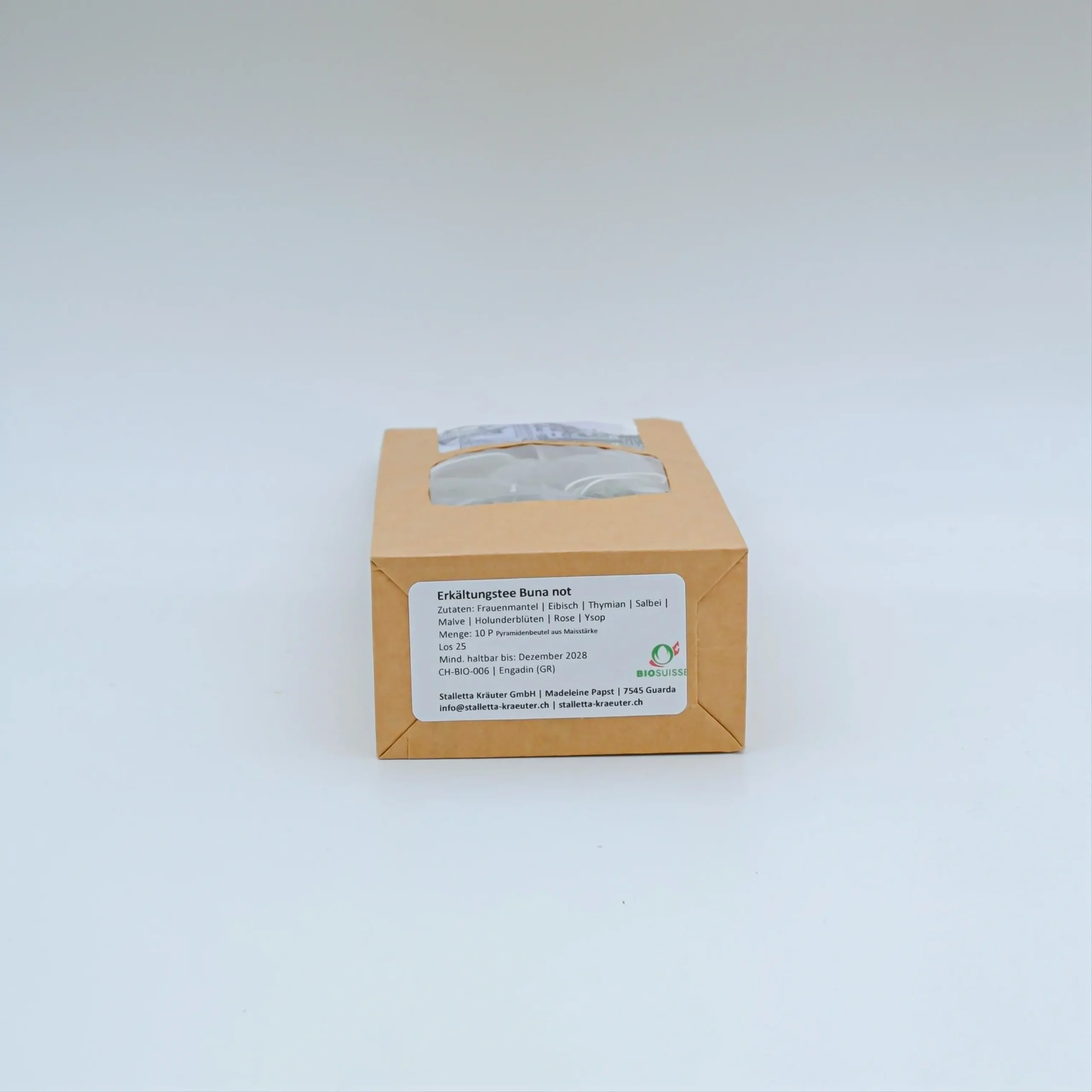 Wenn draussen die Bündner Bergluft frisch wird und die Erkältungszeit naht, tut eine wohltuende Tasse Tee besonders gut. Die Teemischung Buna not vereint traditionelle alpine Kräuter wie Thymian, Salbei und Holunderblüten, die seit Generationen für ihre wohltuenden Eigenschaften geschätzt werden. Frauenmantel, Malve und Eibisch runden den Tee mit ihrer milderen, beruhigenden Note ab. Ein Hauch Rose bringt eine feine, florale Eleganz in die Tasse.