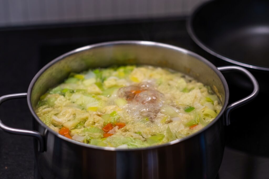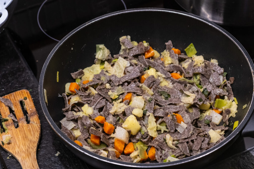 • Nach weiteren 5-7 Minuten Wirz und Lauch dazu