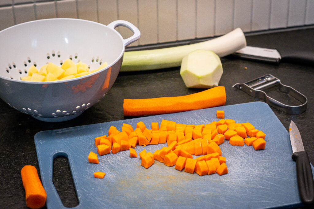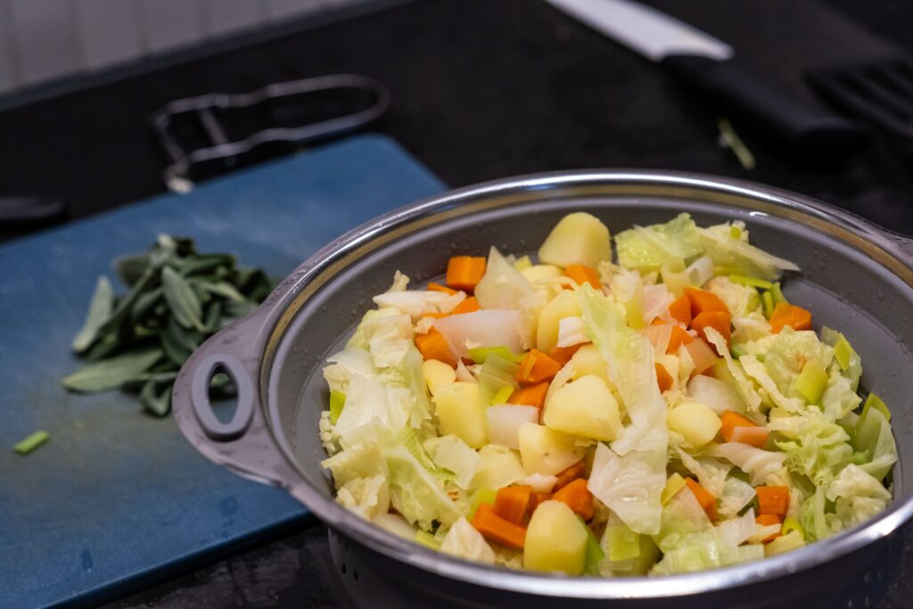 1. Gemüse (inkl. Salbeiblätter) in gleich grosse Stücke schneiden -> schnippla, schnippla, schnippla