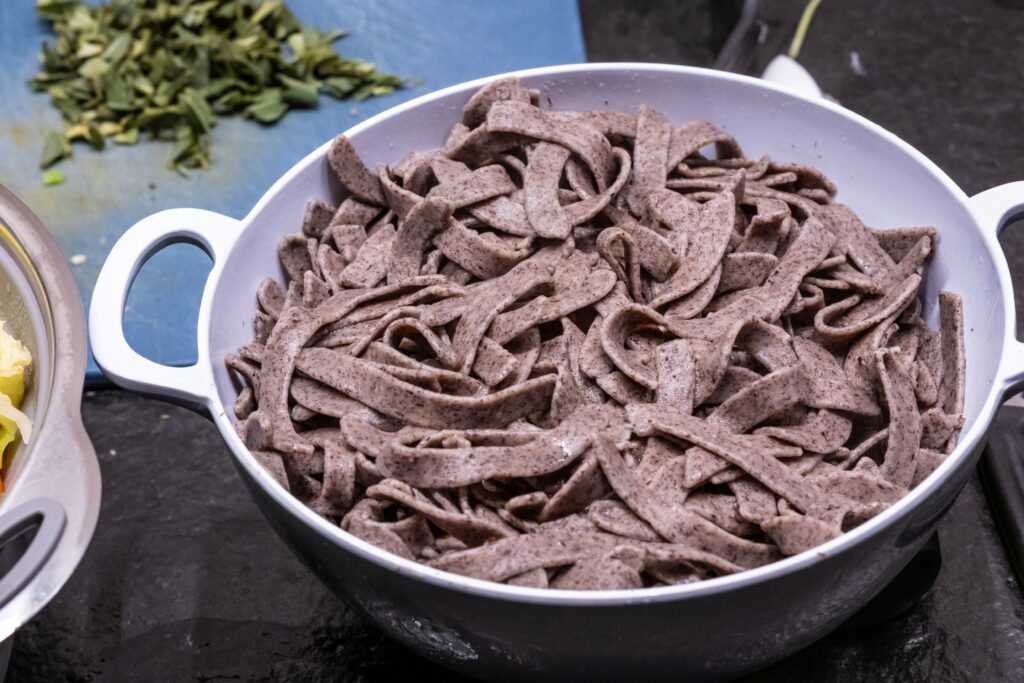 Heute geht’s kulinarisch in den Süden Graubündens – genauer gesagt ins Puschlav. Von dort nämlich kommt ein weiteres bekanntes Gericht aus Graubünden: Pizzoccheri. Es handelt sich hierbei um eine Teigwarenart aus Buchweizen- und Weizenmehl, welche mit verschiedenem Gemüse und Käse vermischt und serviert wird.